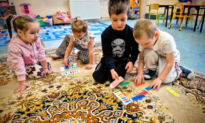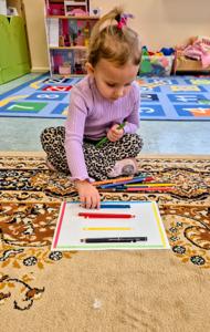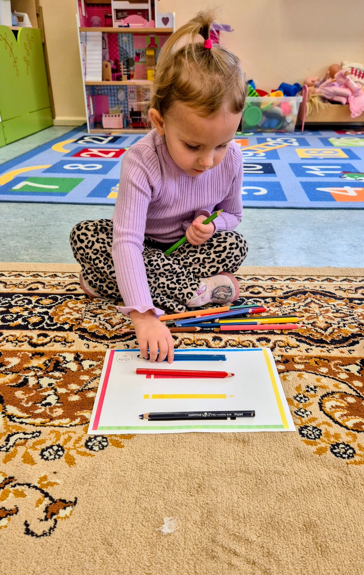 - układały kredki według wzoru, rozwijając spostrzegawczość, koncentrację i logiczne myślenie;