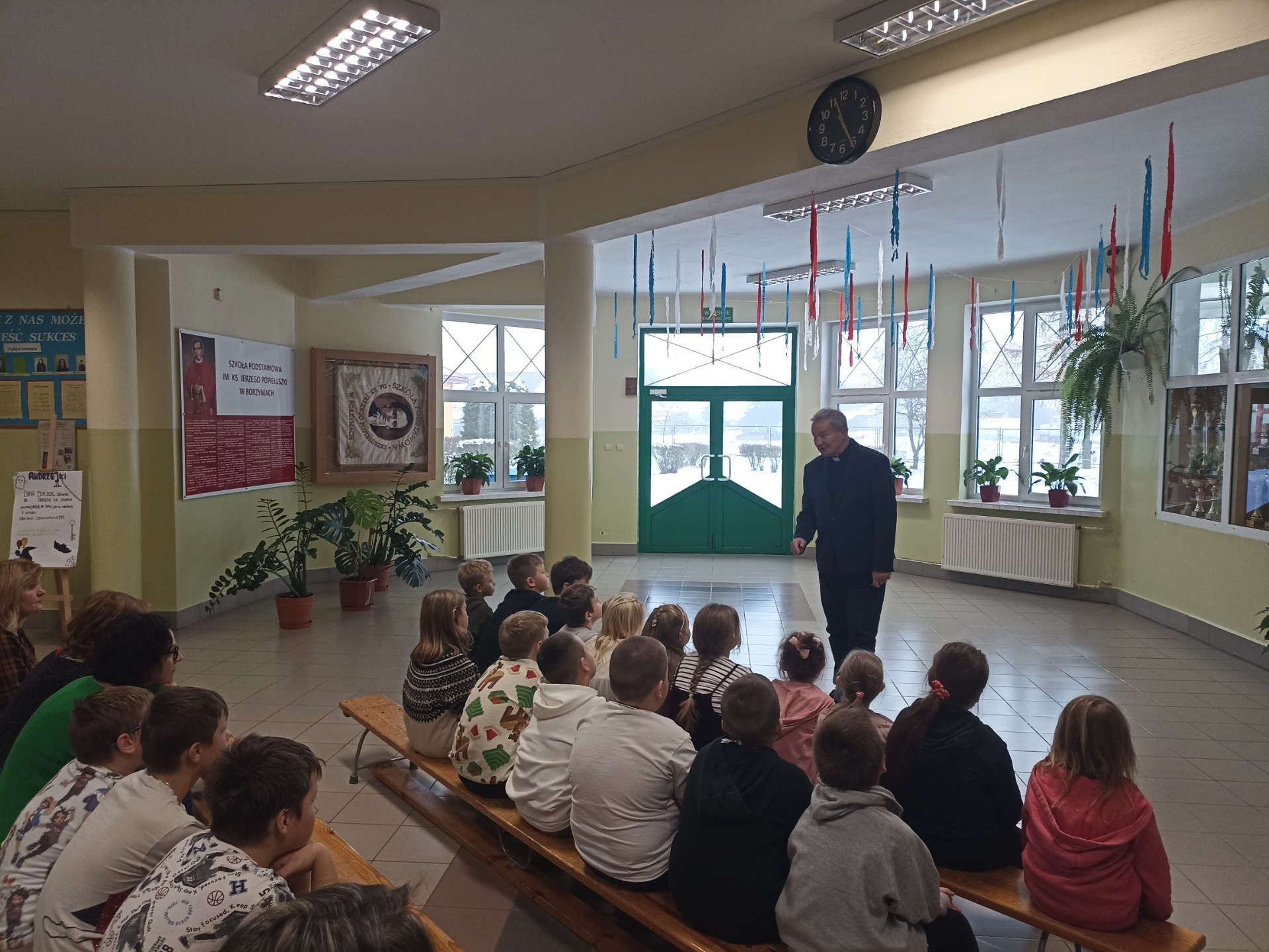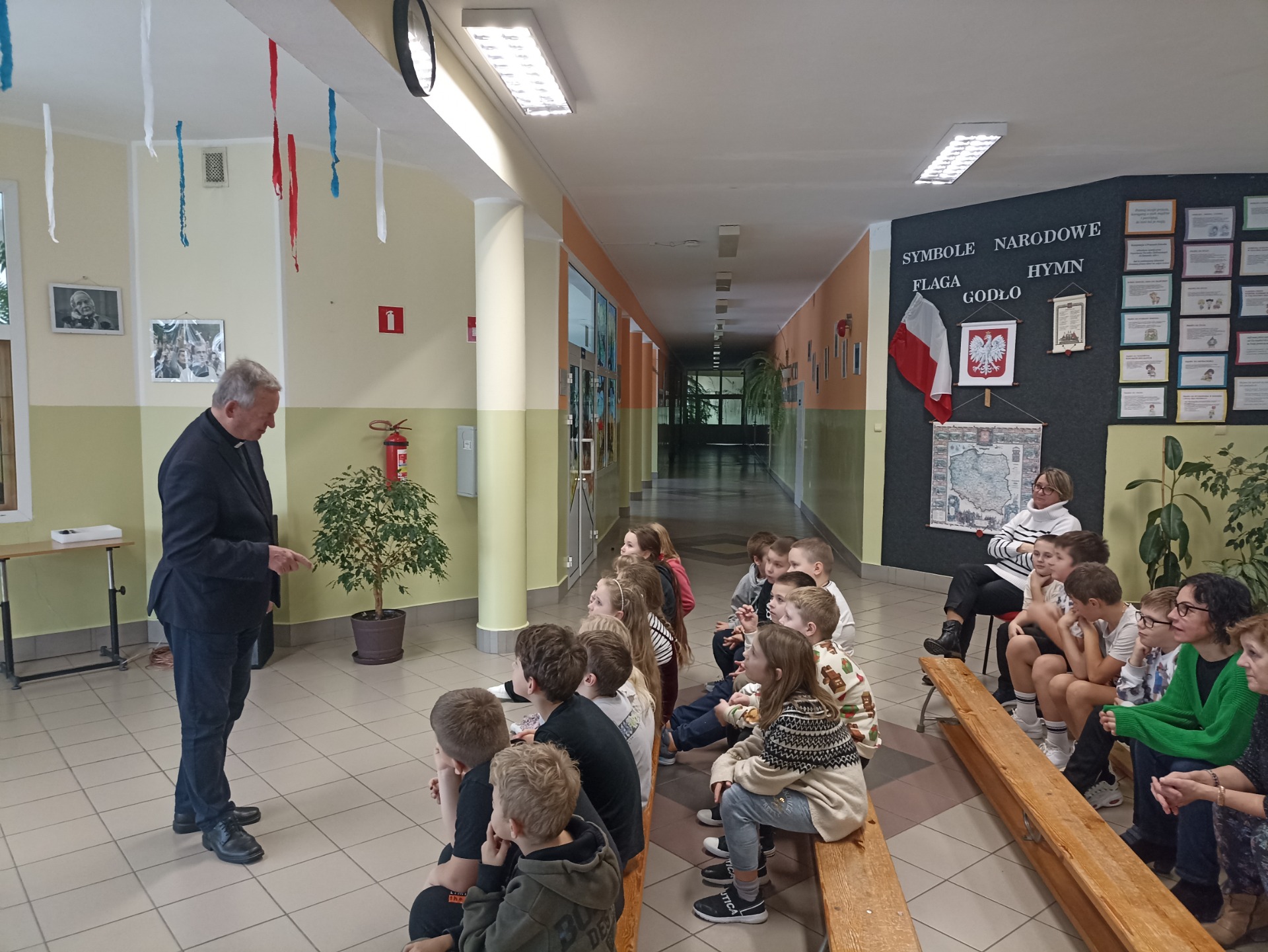 27 listopada gościliśmy w naszej szkole księdza Marka Dziewieckiego. Ksiądz Marek jest doktorem psychologii, znanym i cenionym edukatorem z zakresu wychowania i profilaktyki, autorem wielu książek i publikacji. Przed południem uczniowie klas młodszych I - IV po południu uczniowie kl. V-VIII uczestniczyli w konferencji pt. „Jak żyć by być szczęśliwym”. Usłyszeli wiele ważnych wskazówek dotyczących dbania o siebie, o swoje zdrowie, o relacje z innymi i co istotne – z samym sobą. Bardzo dziękujemy Księdzu za podzielenie się bogactwem swej wiedzy i doświadczeniem. Liczymy na kolejne spotkania.