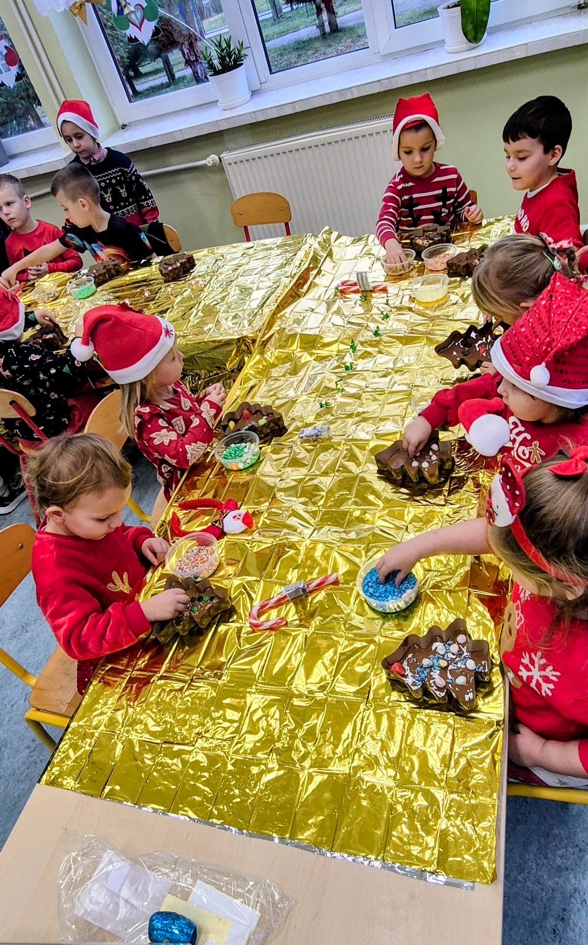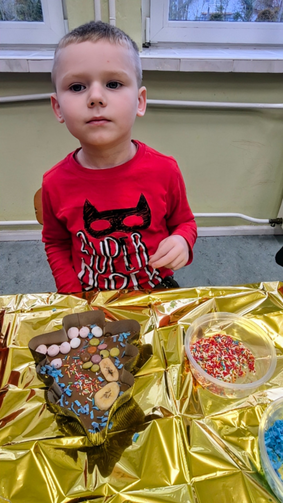 Nasze przedszkolaki wzięły udział w słodkich warsztatach czekoladowych. Dzieci samodzielnie ozdabiały swoje czekolady, tworząc wyjątkowe i kolorowe kompozycje.